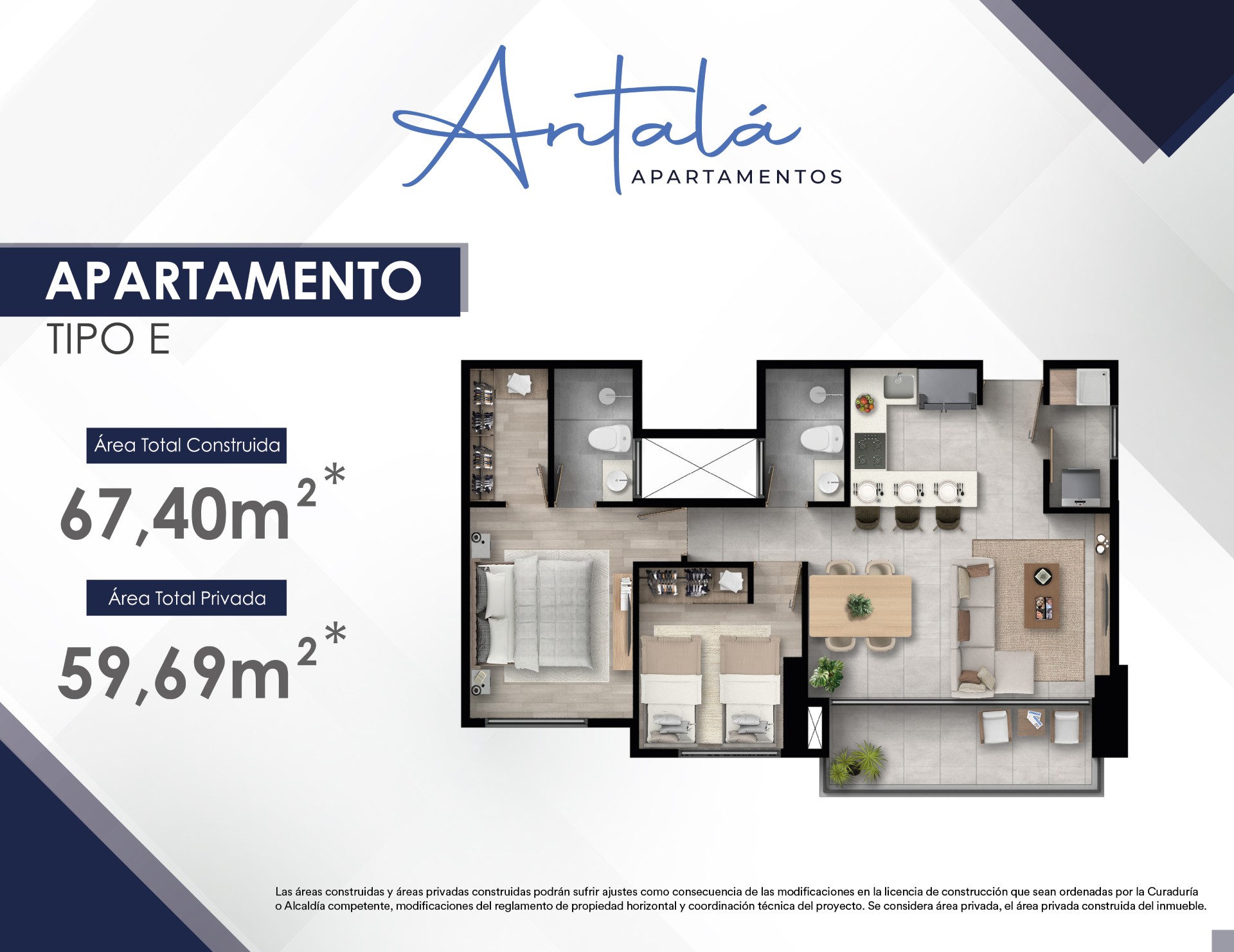 3.Las imágenes utilizadas en la presentación de los proyectos inmobiliarios, tales como piezas publicitarias, planos, renders, áreas, acabados, entre otros, son representaciones digitales y artísticas del diseño, por lo tanto, no configuran compromiso contractual por parte de Ospinas y Cía. S.A. Las zonas comunes, áreas privadas y construidas podrán sufrir ajustes como consecuencia de las modificaciones en la licencia de construcción ordenadas por la Curaduría o alcaldía competente o modificaciones al Reglamento de Propiedad Horizontal. El mobiliario, acabados y demás elementos que aparecen en las imágenes de los proyectos inmobiliarios, son una representación con el fin de ilustrar la utilización de los espacios. Las zonas comunes del Proyecto se entregan según la etapa que corresponda. Para cualquier inquietud acerca de especificaciones del proyecto y de los inmuebles que los componen, consulte el documento Declaro Conocer del Proyecto.