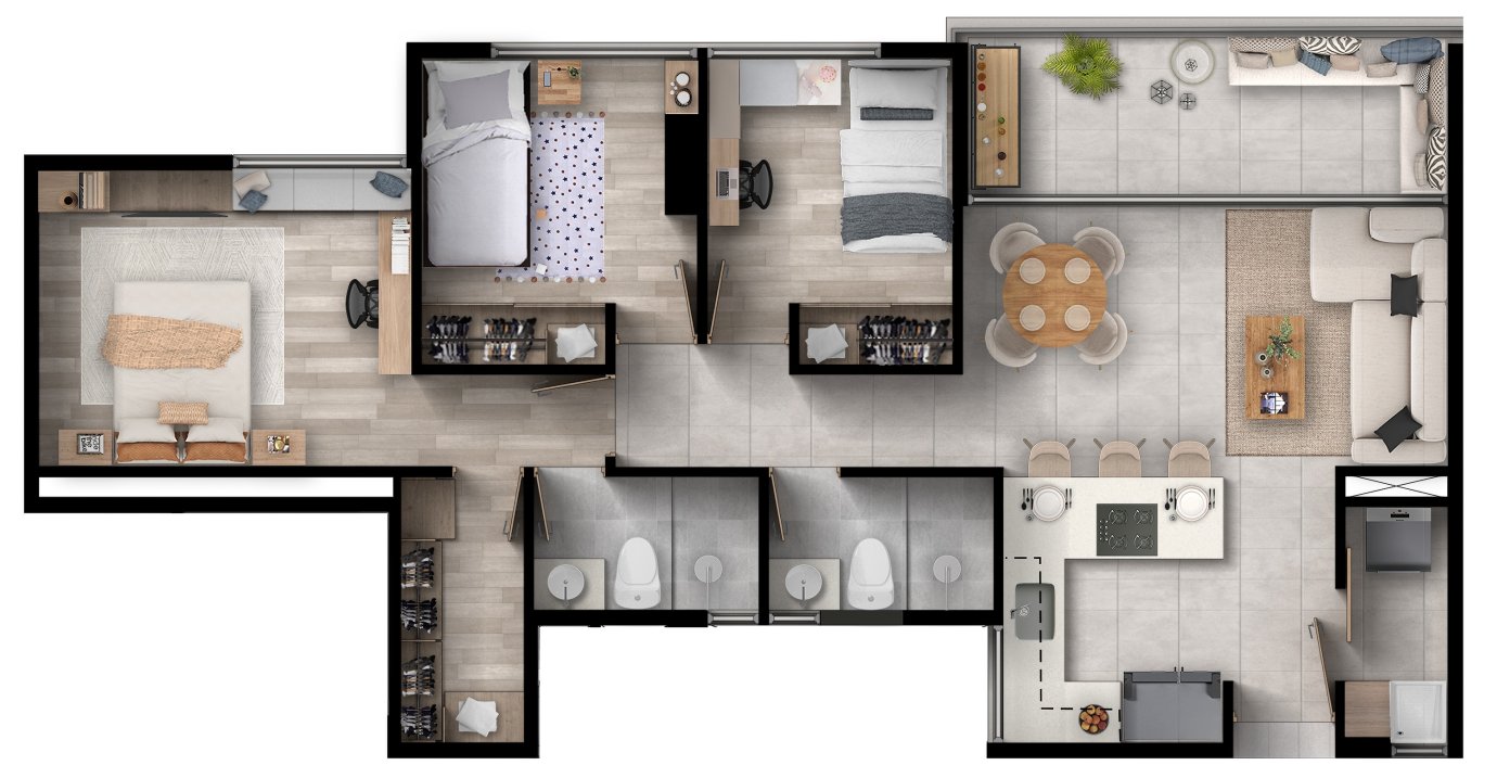 Área privada: 69.30 m2