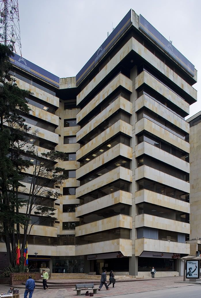 Este edificio de oficinas construido para la sede de la compañía Suramericana fue el primero de este tipo que realizó la firma sobre el pie de la Avenida Chile.