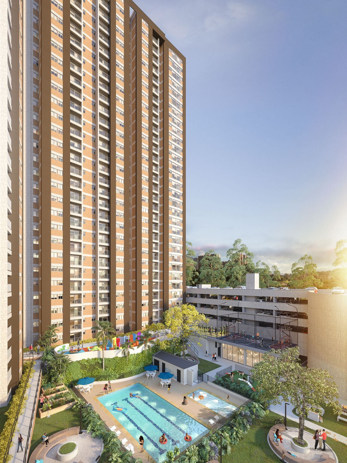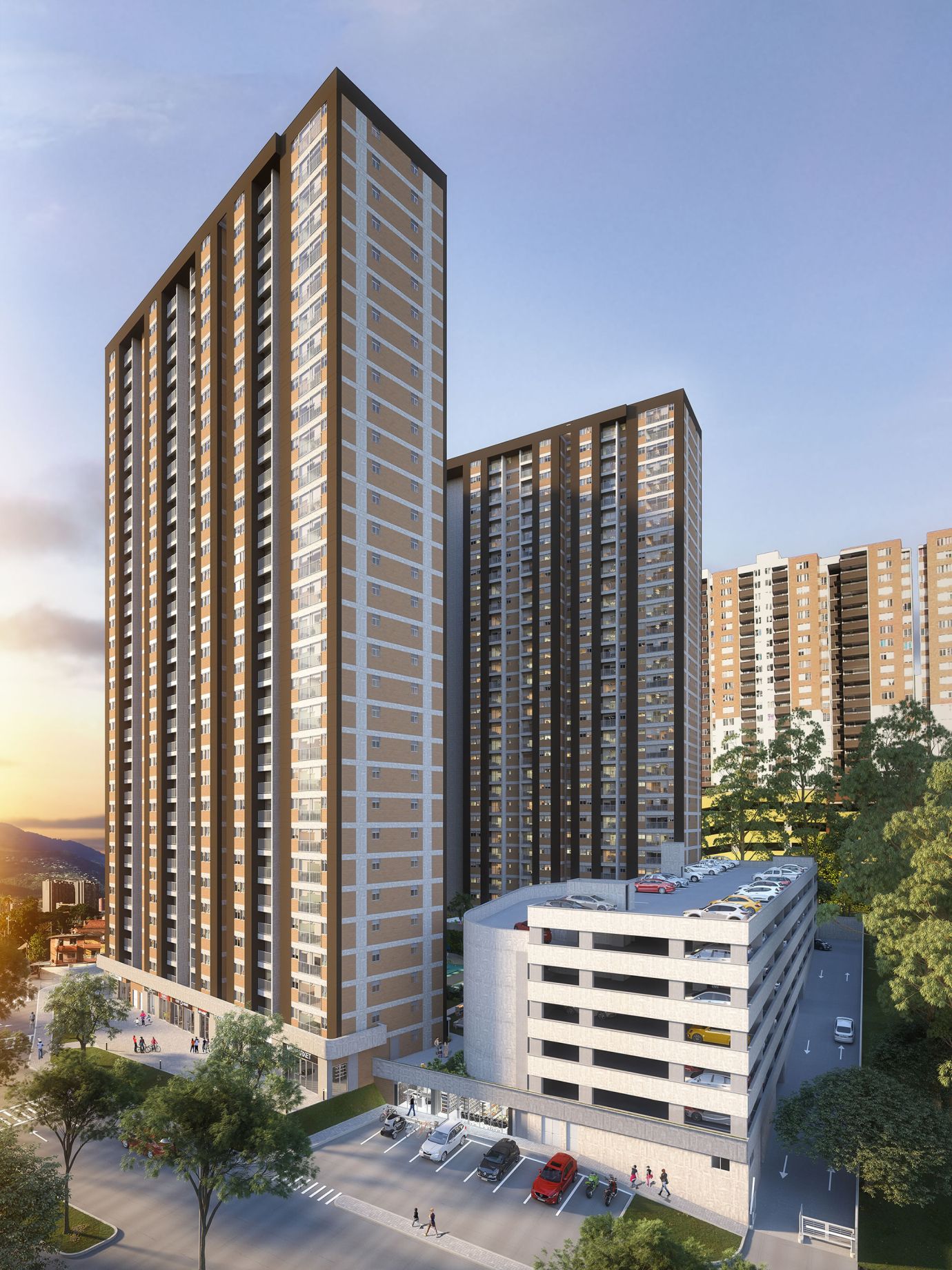 3 torres de 30 y 31 pisos. Apartamentos de 1, 2 y 3 alcobas, con zonas comunes para toda la familia.