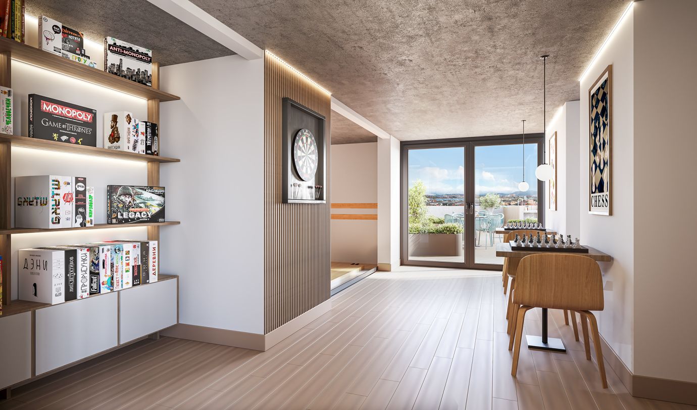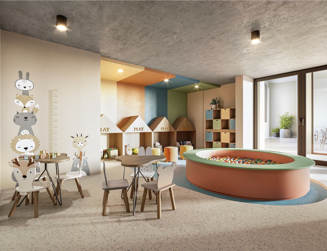 Lobby, Espacio para Gimnasio, Espacio para salón lounge, Parque Infantil, Espacio para bike zone, Espacio para Pet Spa, Espacio para Zona de juegos,Espacio para salón de lectura, Espacio para salín de niños, Espacio para zona de juegos tradicionales, Espacio para salón social, Terraza Transitable, Terraza BBQ